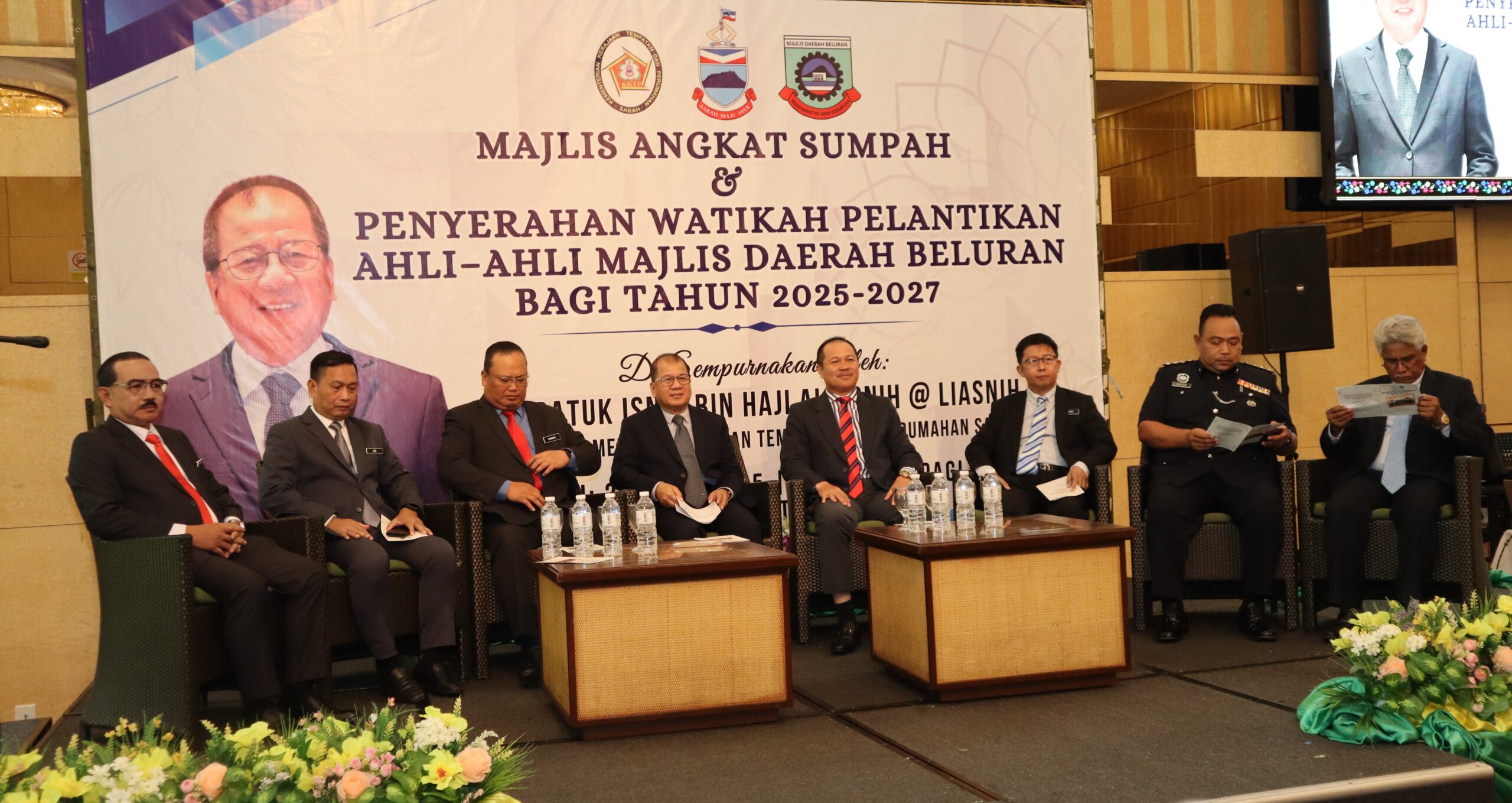 Majlis Angkat Sumpah dan Penyerahan Watikah Pelantikan Ahli-Ahli Majlis Daerah Beluran bagi Sesi 2025 sehingga 2027, yang bertempat di Sabah Hotel, Sandakan. Majlis Ini disempurnakan oleh YB Datuk Isnin Bin Aliasnih@Liasnih Pembantu Menteri Kerajaan Tempatan Dan Perumahan Negeri Sabah.