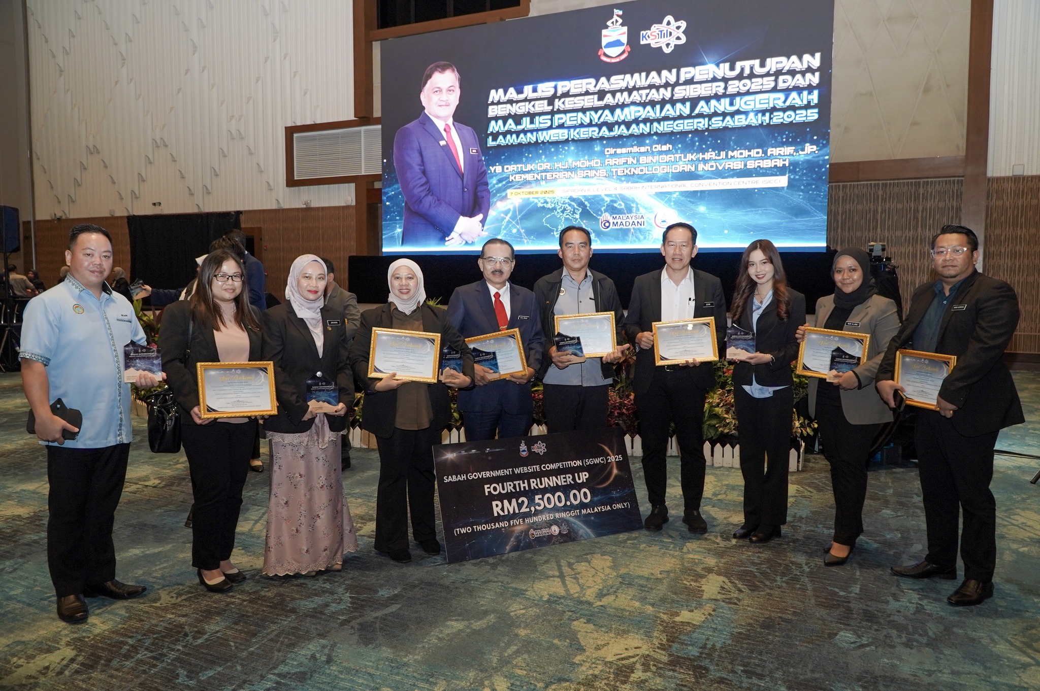 Majlis Penyampaian Anugerah Laman Web Kerajaan Negeri Sabah 2025, yang memberi pengiktirafan kepada jabatan serta agensi kerajaan negeri atas usaha memperkukuh keberkesanan penyampaian maklumat serta perkhidmatan dalam talian kepada rakyat. Sebanyak 36 penerima anugerah telah disampaikan pada tahun ini, berbanding hanya 9 penerima anugerah pada tahun sebelumnya — satu peningkatan ketara yang mencerminkan komitmen kerajaan negeri terhadap pendigitalan perkhidmatan awam.